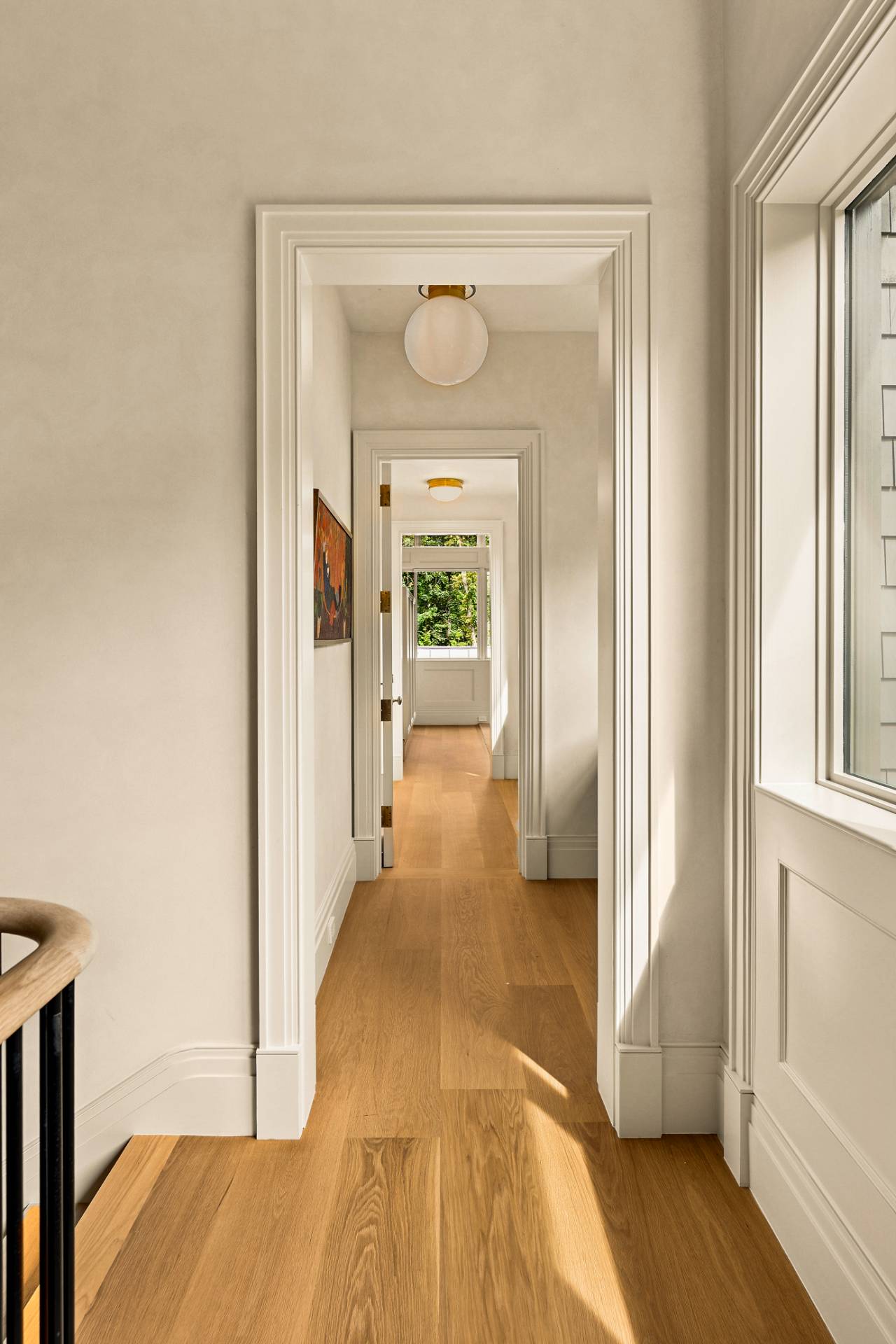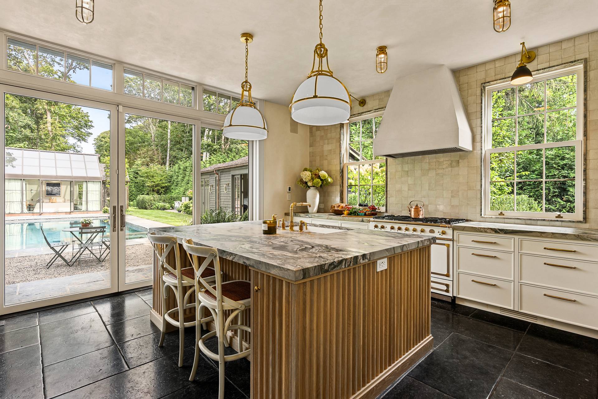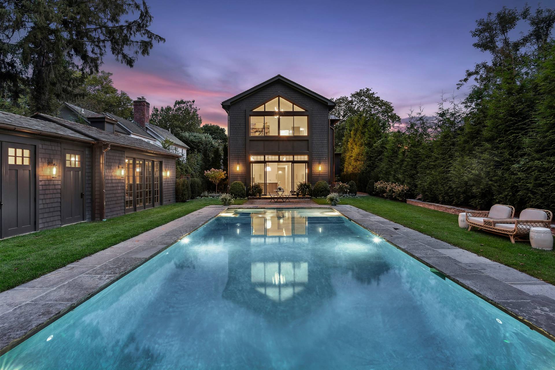 Set in the heart of Sag Harbor Village, 207 Madison Street stands as both a work of architecture and a living chronicle of local history. Originally built in 1841 by Col. Henry Wentworth Hunt - publisher of The Sag Harbor Corrector, which later became The Sag Harbor Express - the house sheltered three generations of the Hunt-Johnson family before becoming a beloved gathering place for hosts Joe Petrocik and Myron Clement, whose circle famously included Truman Capote. Their imprint lives on in the estate's layered story, from the glass conservatory they salvaged at the Bridgehampton Horse Show to the echoes of evenings spent entertaining Sag Harbor's creative set. Fully reimagined, the home has been completely redone with an over three-year restoration led by Riostello Studio, MJS Building & Development, and Halcyon Design. The historic residence was carefully lifted to allow for a new foundation and expanded with a seamless 1,400 +/- sq. ft. addition. Original elements - including solid timber porch columns, the front door with rim lock and sidelights, hand-hewn beams, and early bricks and granite from the chimneys and foundation - were meticulously preserved and repurposed throughout the property. Today, the 5,000 +/- sq. ft. residence unfolds across three finished levels with five bedrooms and six bathrooms (plus 2 half baths). The interiors marry historic craftsmanship with modern sophistication: a gracious entry foyer opens to formal living and dining rooms, along with a Truman Capote-inspired lounge. The eat-in kitchen is anchored by custom white oak cabinetry, a leathered quartzite island, a La Cornue gas range, and top-tier appliances from Sub-Zero and Miele. Upstairs, three en suite bedrooms, including the primary suite, offer private retreats, while the lower-level guest/staff suite enjoys its own entrance. Wide-plank white oak, Belgian bluestone, custom millwork, and Waterworks fixtures lend refinement throughout, while amenities such as a fitness center with steam shower, radiant-heated baths, and Lutron home automation ensure comfort at every turn. Outdoors, the estate spans 0.38 +/- acres of newly landscaped grounds with an extensive investment in mature hornbeams, pleached lindens, and lush perimeter greenery. A heated 17' x 40' saltwater gunite pool and 8' x 8' spa form the centerpiece, flanked by the restored glass conservatory with its legal bath and the versatile garage/pool cabana with powder room, bar, and outdoor shower. Expansive Kota limestone terrace and gardens framed by original granite complete the setting. With existing HARB approval, a driveway gate can easily be installed for additional privacy. 207 Madison Street is not simply a home; it is a rare opportunity to own a reimagined landmark that blends nearly two centuries of Sag Harbor heritage with the luxuries of contemporary living.