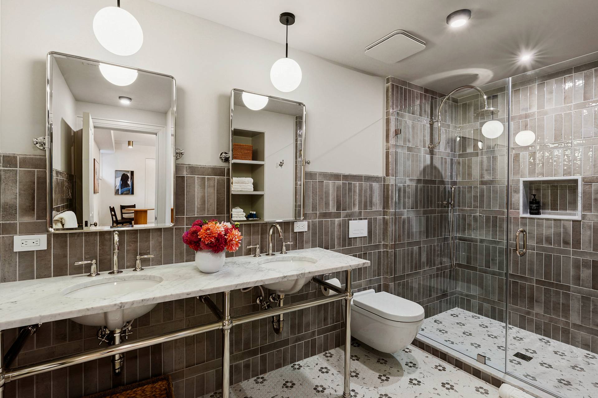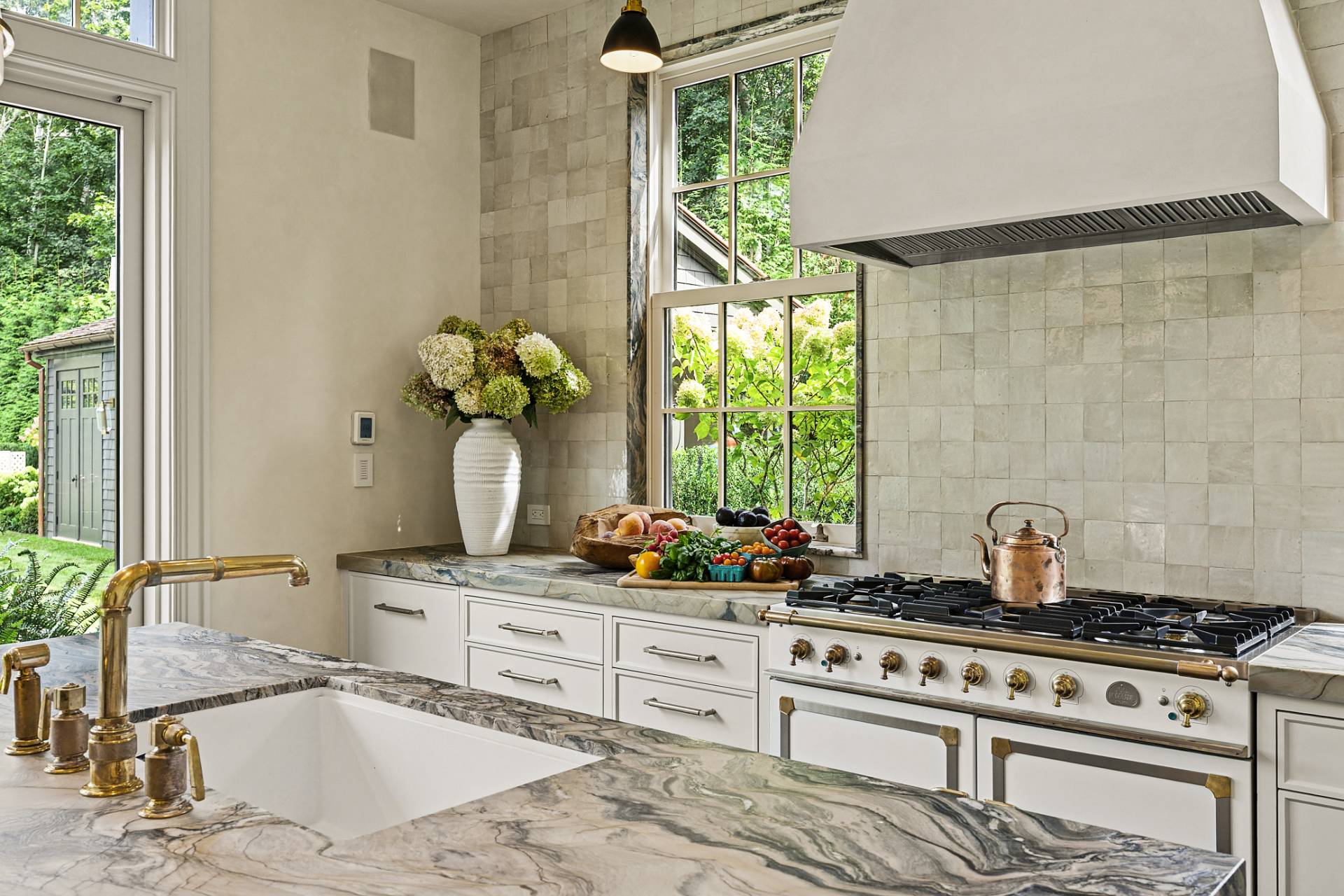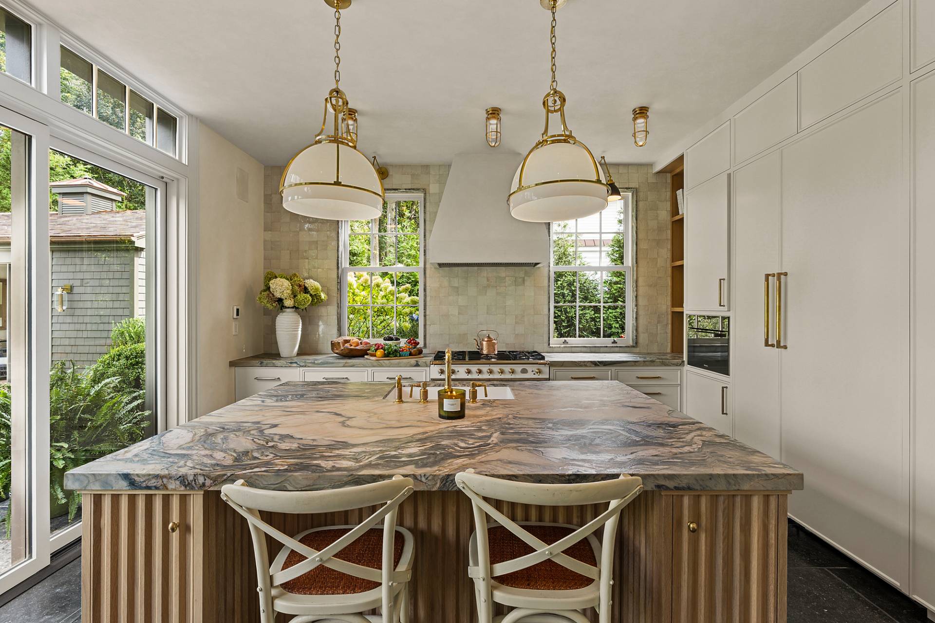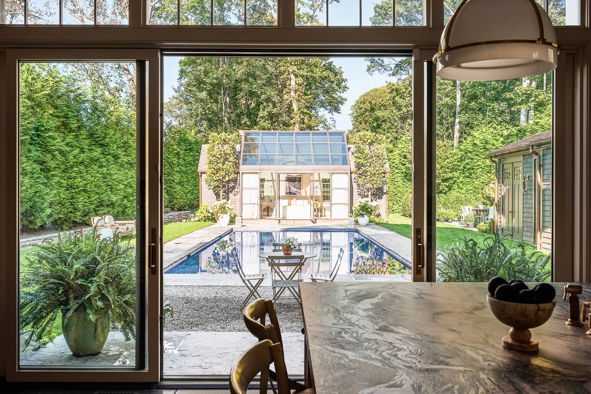 Set in the heart of Sag Harbor Village, 207 Madison Street stands as both a work of architecture and a living chronicle of local history. Originally built in 1841 by Col. Henry Wentworth Hunt - publisher of The Sag Harbor Corrector, which later became The Sag Harbor Express - the house sheltered three generations of the Hunt-Johnson family before becoming a beloved gathering place for hosts Joe Petrocik and Myron Clement, whose circle famously included Truman Capote. Their imprint lives on in the estate's layered story, from the glass conservatory they salvaged at the Bridgehampton Horse Show to the echoes of evenings spent entertaining Sag Harbor's creative set. Fully reimagined, the home has been completely redone with an over three-year restoration led by Riostello Studio, MJS Building & Development, and Halcyon Design. The historic residence was carefully lifted to allow for a new foundation and expanded with a seamless 1,400 +/- sq. ft. addition. Original elements - including solid timber porch columns, the front door with rim lock and sidelights, hand-hewn beams, and early bricks and granite from the chimneys and foundation - were meticulously preserved and repurposed throughout the property. Today, the 5,000 +/- sq. ft. residence unfolds across three finished levels with five bedrooms and six bathrooms (plus 2 half baths). The interiors marry historic craftsmanship with modern sophistication: a gracious entry foyer opens to formal living and dining rooms, along with a Truman Capote-inspired lounge. The eat-in kitchen is anchored by custom white oak cabinetry, a leathered quartzite island, a La Cornue gas range, and top-tier appliances from Sub-Zero and Miele. Upstairs, three en suite bedrooms, including the primary suite, offer private retreats, while the lower-level guest/staff suite enjoys its own entrance. Wide-plank white oak, Belgian bluestone, custom millwork, and Waterworks fixtures lend refinement throughout, while amenities such as a fitness center with steam shower, radiant-heated baths, and Lutron home automation ensure comfort at every turn. Outdoors, the estate spans 0.38 +/- acres of newly landscaped grounds with an extensive investment in mature hornbeams, pleached lindens, and lush perimeter greenery. A heated 17' x 40' saltwater gunite pool and 8' x 8' spa form the centerpiece, flanked by the restored glass conservatory with its legal bath and the versatile garage/pool cabana with powder room, bar, and outdoor shower. Expansive Kota limestone terrace and gardens framed by original granite complete the setting. With existing HARB approval, a driveway gate can easily be installed for additional privacy. 207 Madison Street is not simply a home; it is a rare opportunity to own a reimagined landmark that blends nearly two centuries of Sag Harbor heritage with the luxuries of contemporary living.